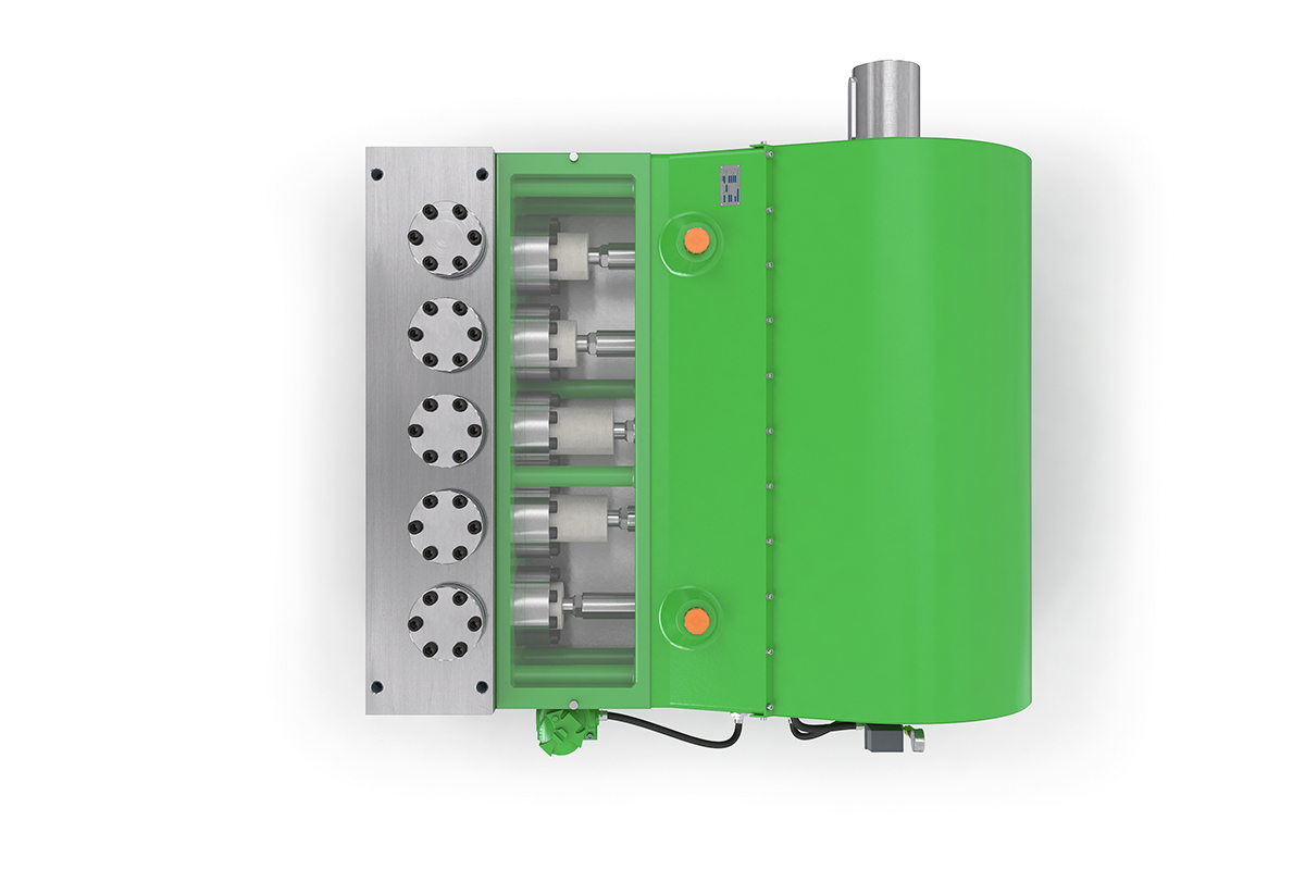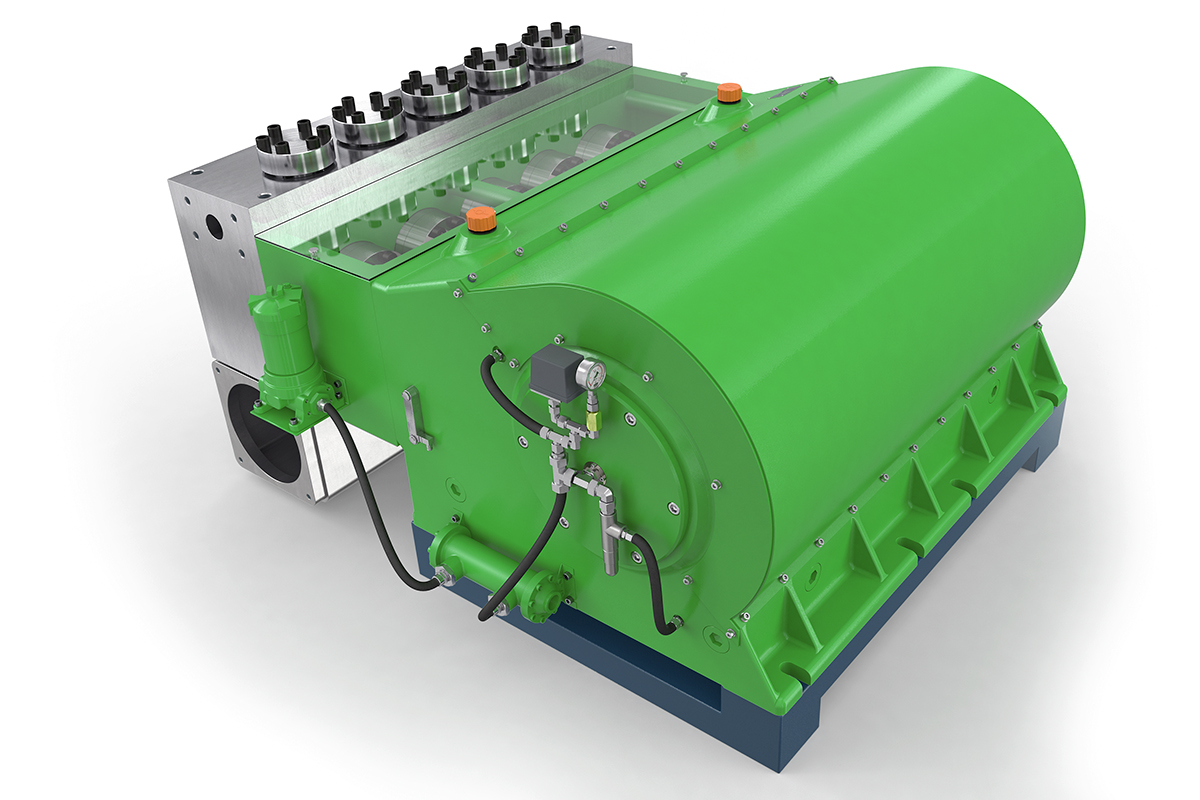 K120000-5G高壓泵的輸入功率為1200 kW,是一款功能強大的泵。 作為五缸泵,它在許多應用中無需入口增壓泵。 其特殊的五缸設計使我們在泵中產(chǎn)生實現(xiàn)大流量傳輸而無氣穴現(xiàn)象。 該泵用于液壓和鋼鐵廠,以及石油和天然氣工業(yè)的大型系統(tǒng)。 帶有外部油壓潤滑和油冷卻器的變速箱可確保高壓泵安全,連續(xù)地運行。