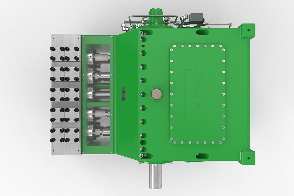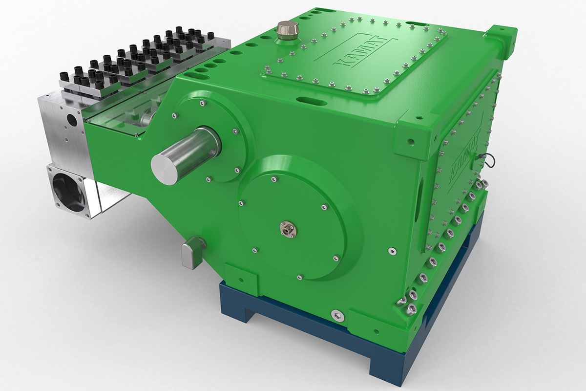 K80000高壓泵的輸入功率為800 kW,是一款功能特別強(qiáng)大的泵。 作為五缸泵,它可以在許多應(yīng)用中工作而無(wú)需安裝入口增壓泵。 其特殊的五缸設(shè)計(jì)可實(shí)現(xiàn)大流量輸送,而不會(huì)在泵中產(chǎn)生氣穴。與較小型的K50000相似,它用于更大型噴射或液壓任務(wù)。 它特別適合高端采礦應(yīng)用,水力液壓系統(tǒng),鋼鐵廠以及石油和天然氣工業(yè)的大型系統(tǒng)中的重苦力。 帶有油壓潤(rùn)滑和油冷卻器的變速箱可確保高壓泵安全,連續(xù)地運(yùn)行。